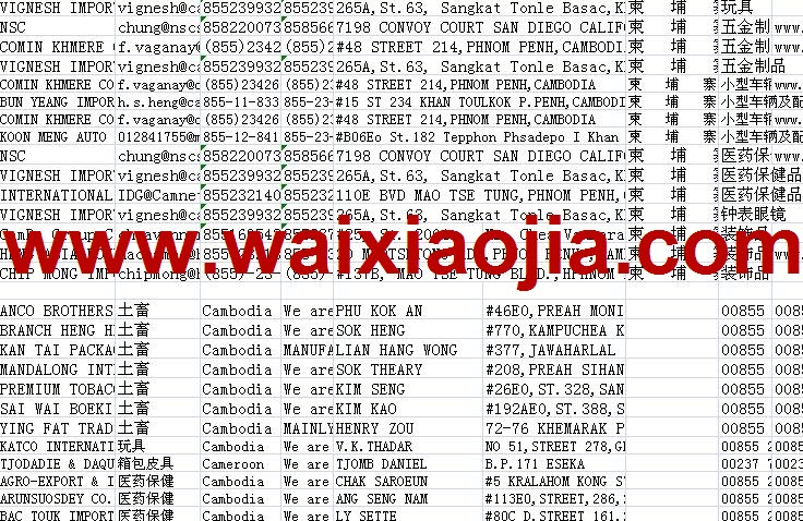 柬埔寨采購(gòu)商名單數(shù)據(jù)為Excel格式,信息可任意修改、復(fù)制、打印、導(dǎo)出及導(dǎo)入到傳真、郵件群發(fā)等軟件中,無(wú)任何限制。