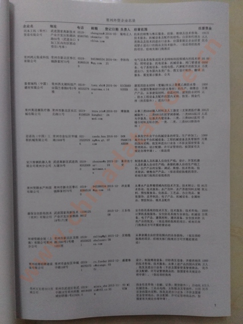 最新常州外資企業(yè)黃頁涵蓋了常州外商獨(dú)資企業(yè)、中外合資經(jīng)營企業(yè)以及港、澳、臺(tái)資企業(yè),包括常州臺(tái)資日資企業(yè)黃頁,常州外企黃頁具體內(nèi)容包括:企業(yè)名稱、地址、電話、傳真、郵箱、經(jīng)營范圍、注冊(cè)資金等信息;常州外資企業(yè)黃頁里面的企業(yè)都一些中外合資的大企業(yè),這些公司經(jīng)濟(jì)實(shí)力都比較雄厚,出口產(chǎn)品也比較多,業(yè)務(wù)范圍都比較廣,跟他們開展業(yè)務(wù)往來都比較容易;有了常州臺(tái)企日企黃頁開展業(yè)務(wù)也有了針對(duì)性,也省去了盲目去尋找客戶名單而浪費(fèi)的時(shí)間了,工作效率也會(huì)有很大的提高.歡迎需要的客戶及時(shí)聯(lián)系我們!