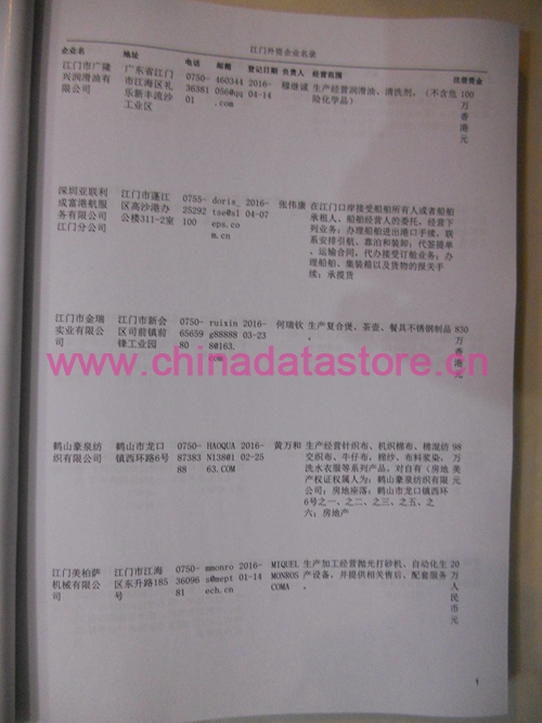 江門外資企業(yè)黃頁經(jīng)過人工多次整理更新以及去重處理,提供開放的Excel等格式具有開放性特點(diǎn),可以自由地添加、刪除、更改,導(dǎo)入導(dǎo)出到電腦中保存等操作,還可以輕松打印