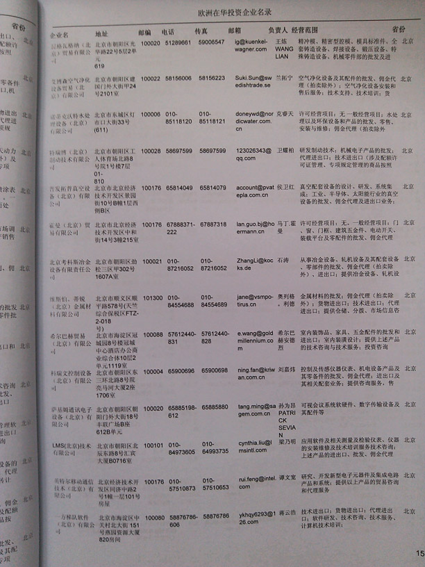 最新法國在華企業(yè)黃頁主要收錄了法國在中國境內(nèi)的獨資、合資、合作經(jīng)營等類型的企業(yè)通信黃頁,法國外商投資企業(yè)黃頁內(nèi)容有:企業(yè)名稱、地址、電話、傳真、電子郵箱、經(jīng)營范圍、注冊資金等;法國外商黃頁都是一些國際上的知名品牌企業(yè)在大陸地區(qū)設(shè)立的分公司及辦事機構(gòu),這類企業(yè)經(jīng)濟實力、技術(shù)實力與品牌效應(yīng)都比較強,與這類企業(yè)開展合作業(yè)務(wù)是許多國內(nèi)企業(yè)夢寐以求的事情,因此在華法國企業(yè)名單是各個國內(nèi)企業(yè)提高銷售業(yè)績必備的參考工具!