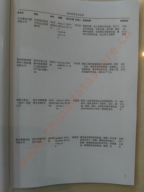 徐州外資企業(yè)黃頁經(jīng)過人工多次整理更新以及去重處理,提供開放的Excel等格式具有開放性特點,可以對徐州外資公司黃頁自由地添加、刪除、更改,導(dǎo)入導(dǎo)出到電腦中保存等操作,還可以輕松打印