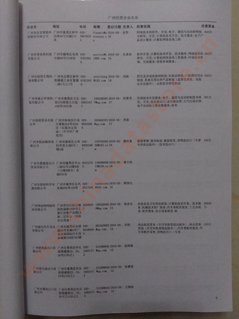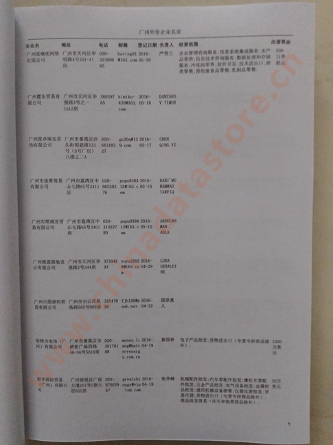 2021版最新廣州企業(yè)黃頁(yè)包括《廣州制造企業(yè)黃頁(yè)》、《廣州貿(mào)易企業(yè)黃頁(yè)》、《廣州民營(yíng)企業(yè)黃頁(yè)》、《廣州外資企業(yè)黃頁(yè)》、《廣州外貿(mào)企業(yè)黃頁(yè)》共五冊(cè),現(xiàn)優(yōu)惠價(jià):280元/冊(cè)。每?jī)?cè)內(nèi)容包括:?jiǎn)挝幻Q、地址、郵編、電話、傳真、郵箱、經(jīng)營(yíng)范圍等;廣州企業(yè)黃頁(yè)涵蓋了近幾年來(lái)最新成立的、有一定規(guī)模的企業(yè),具有非常高的營(yíng)銷價(jià)值。有了這套黃頁(yè)開展業(yè)務(wù)也有了針對(duì)性,也省去了盲目去尋找客戶名單而浪費(fèi)的時(shí)間了,工作效率也會(huì)有很大的提高。歡迎需要廣州企業(yè)黃頁(yè)的朋友及時(shí)聯(lián)系我們!