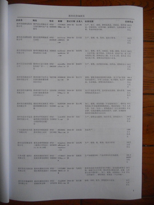 2021版最新惠州企業(yè)黃頁包括《惠州制造企業(yè)黃頁》、《惠州貿(mào)易企業(yè)黃頁》、《惠州民營(yíng)企業(yè)黃頁》、《惠州外資企業(yè)黃頁》、《惠州外貿(mào)企業(yè)黃頁》共五冊(cè),現(xiàn)優(yōu)惠價(jià):280元/冊(cè)。每?jī)?cè)內(nèi)容包括:?jiǎn)挝幻Q、地址、郵編、電話、傳真、郵箱、經(jīng)營(yíng)范圍等;惠州企業(yè)黃頁涵蓋了近幾年來最新成立的、有一定規(guī)模的企業(yè),具有非常高的營(yíng)銷價(jià)值。有了這套黃頁開展業(yè)務(wù)也有了針對(duì)性,也省去了盲目去尋找客戶名單而浪費(fèi)的時(shí)間了,工作效率也會(huì)有很大的提高。歡迎需要惠州企業(yè)黃頁的朋友及時(shí)聯(lián)系我們!