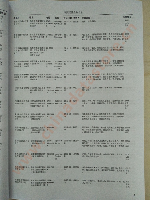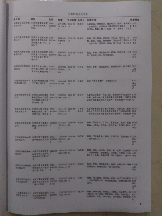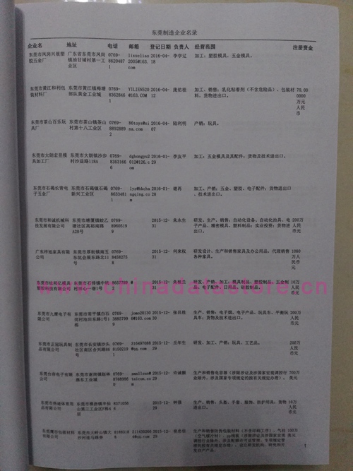 2021版最新東莞企業(yè)黃頁包括《東莞制造企業(yè)黃頁》、《東莞貿(mào)易企業(yè)黃頁》、《東莞民營企業(yè)黃頁》、《東莞外資企業(yè)黃頁》、《東莞外貿(mào)企業(yè)黃頁》共五冊,現(xiàn)優(yōu)惠價:280元/冊。每冊內(nèi)容包括:單位名稱、地址、郵編、電話、傳真、郵箱、經(jīng)營范圍等;東莞企業(yè)黃頁涵蓋了近幾年來最新成立的、有一定規(guī)模的企業(yè),具有非常高的營銷價值。有了這套黃頁開展業(yè)務(wù)也有了針對性,也省去了盲目去尋找客戶名單而浪費(fèi)的時間了,工作效率也會有很大的提高。歡迎需要東莞企業(yè)黃頁的朋友及時聯(lián)系我們!