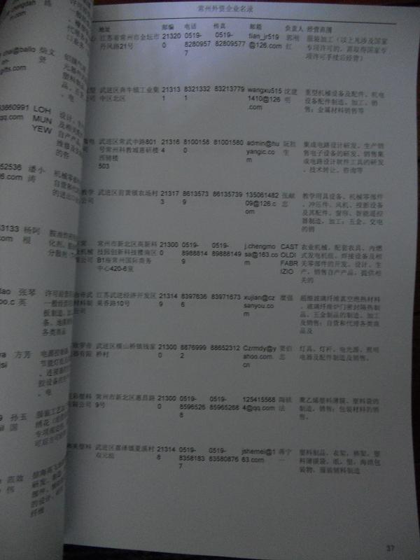 2021版最新常州企業(yè)黃頁包括《常州制造企業(yè)黃頁》、《常州貿(mào)易企業(yè)黃頁》、《常州民營企業(yè)黃頁》、《常州外資企業(yè)黃頁》、《常州外貿(mào)企業(yè)黃頁》共五冊,現(xiàn)優(yōu)惠價(jià):280元/冊。每冊內(nèi)容包括:單位名稱、地址、郵編、電話、傳真、郵箱、經(jīng)營范圍等;常州企業(yè)黃頁涵蓋了近幾年來最新成立的、有一定規(guī)模的企業(yè),具有非常高的營銷價(jià)值。有了這套黃頁開展業(yè)務(wù)也有了針對性,也省去了盲目去尋找客戶名單而浪費(fèi)的時間了,工作效率也會有很大的提高。歡迎需要常州企業(yè)黃頁的朋友及時聯(lián)系我們!