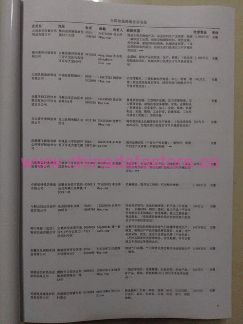 冶煉鑄造企業(yè)黃頁(yè)收錄了最新的冶煉鑄造企業(yè)名單,具有極高的營(yíng)銷價(jià)值,實(shí)實(shí)在在提高銷售業(yè)績(jī)