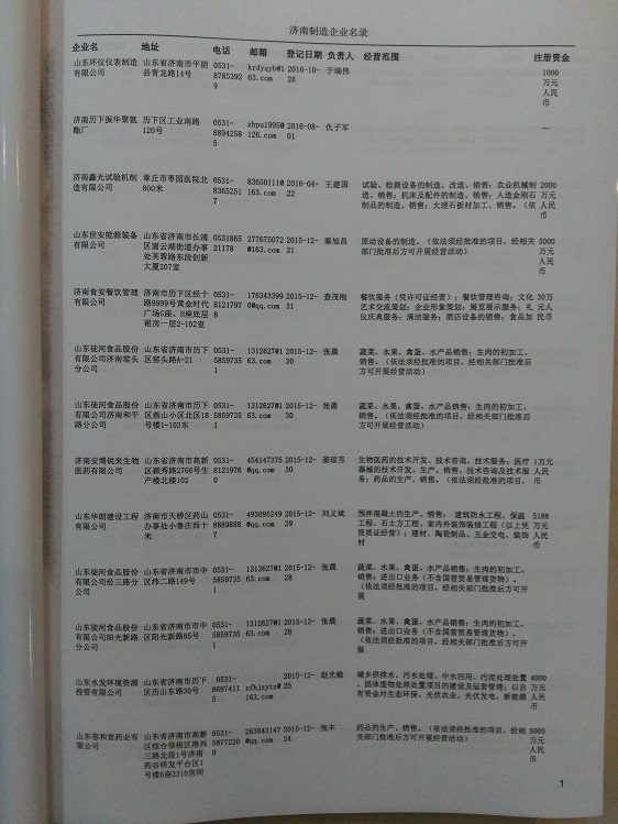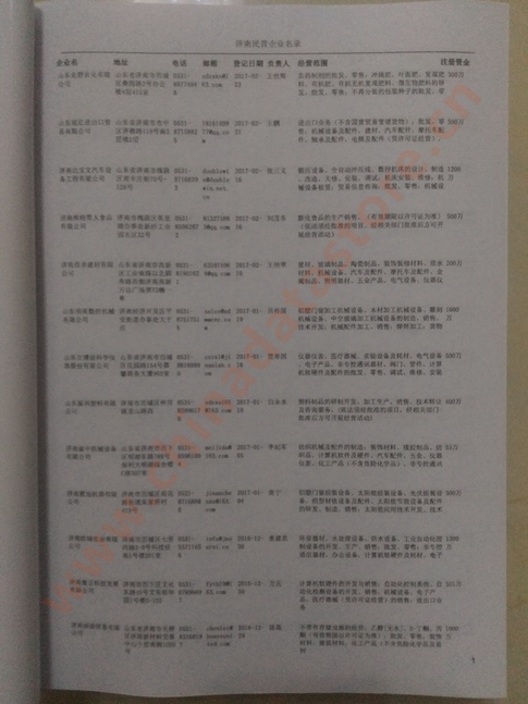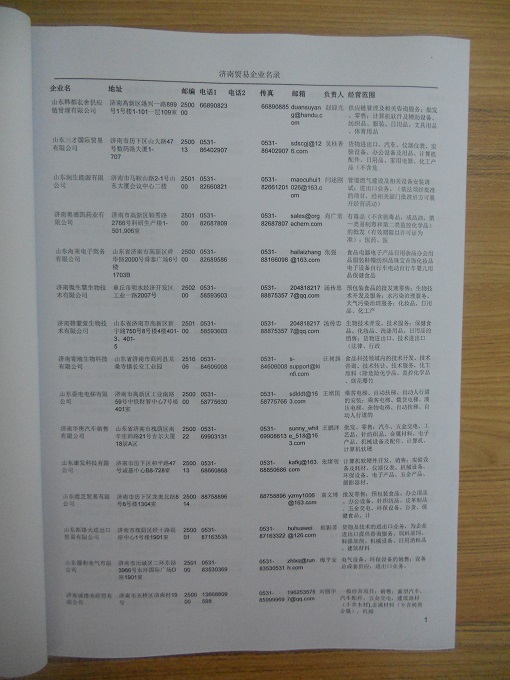 2021版最新濟(jì)南企業(yè)黃頁包括《濟(jì)南制造企業(yè)黃頁》、《濟(jì)南貿(mào)易企業(yè)黃頁》、《濟(jì)南民營企業(yè)黃頁》、《濟(jì)南外資企業(yè)黃頁》、《濟(jì)南外貿(mào)企業(yè)黃頁》共五冊(cè),現(xiàn)優(yōu)惠價(jià):280元/冊(cè)。每冊(cè)內(nèi)容包括:單位名稱、地址、郵編、電話、傳真、郵箱、經(jīng)營范圍等;濟(jì)南企業(yè)黃頁涵蓋了近幾年來最新成立的、有一定規(guī)模的企業(yè),具有非常高的營銷價(jià)值。有了這套黃頁開展業(yè)務(wù)也有了針對(duì)性,也省去了盲目去尋找客戶名單而浪費(fèi)的時(shí)間了,工作效率也會(huì)有很大的提高。歡迎需要濟(jì)南企業(yè)黃頁的朋友及時(shí)聯(lián)系我們!