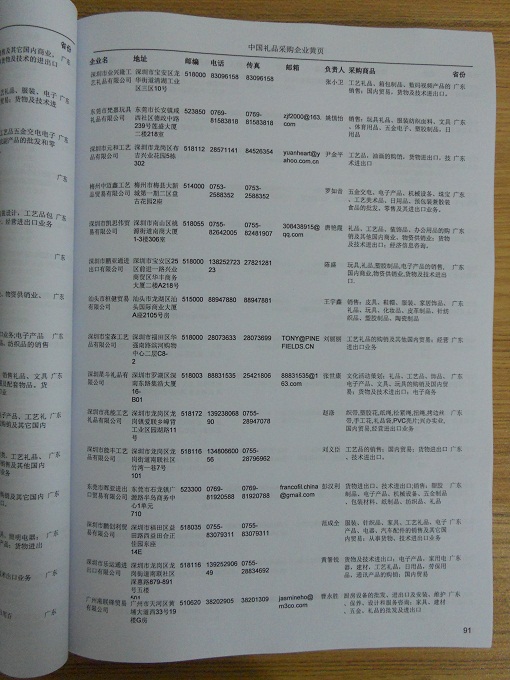 2024年新版中國(guó)禮品采購(gòu)企業(yè)黃頁(yè),收錄了全國(guó)各地經(jīng)營(yíng)范圍涉及禮品產(chǎn)品的貿(mào)易企業(yè),這些都是頗具實(shí)力的禮品產(chǎn)品的中國(guó)采購(gòu)商。黃頁(yè)內(nèi)容包含:企業(yè)名稱、地址、電話、傳真、郵箱、經(jīng)營(yíng)范圍、省份、注冊(cè)資金等信息。該套黃頁(yè)包含一個(gè)黃頁(yè)光碟加一冊(cè)紙質(zhì)書(shū)刊,全國(guó)價(jià)格:1500元,省/直轄市價(jià)格:400元,城市價(jià)格:200元,共收錄了全國(guó)各地大概7116(統(tǒng)計(jì)日期:2018.1)家禮品產(chǎn)品采購(gòu)企業(yè)。黃頁(yè)光碟中是EXCEL格式,信息可任意修改、復(fù)制、打印、導(dǎo)出及導(dǎo)入到傳真、郵件群發(fā)等軟件中,無(wú)任何限制。