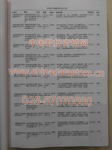 2024年新版中國(guó)醫(yī)療器械采購(gòu)企業(yè)黃頁(yè),收錄了全國(guó)各地經(jīng)營(yíng)范圍涉及醫(yī)療器械產(chǎn)品的貿(mào)易企業(yè),這些都是頗具實(shí)力的醫(yī)療器械產(chǎn)品的中國(guó)采購(gòu)商。黃頁(yè)內(nèi)容包含:企業(yè)名稱(chēng)、地址、電話、傳真、郵箱、經(jīng)營(yíng)范圍、省份、注冊(cè)資金等信息。該套黃頁(yè)包含一個(gè)黃頁(yè)光碟加一冊(cè)紙質(zhì)書(shū)刊,全國(guó)價(jià)格:1200元,省/直轄市價(jià)格是:400元,城市價(jià)格是:200元,共收錄了全國(guó)各地大概36680(更新日期:2017.1)家醫(yī)療器械產(chǎn)品采購(gòu)企業(yè)。黃頁(yè)光碟中是EXCEL格式,信息可任意修改、復(fù)制、打印、導(dǎo)出及導(dǎo)入到傳真、郵件群發(fā)等軟件中,無(wú)任何限制。