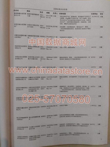 某省或直轄市 如上海、浙江水泥企業(yè)名單  80% - 90% 600元 附贈一冊水泥紙質(zhì)印刷品