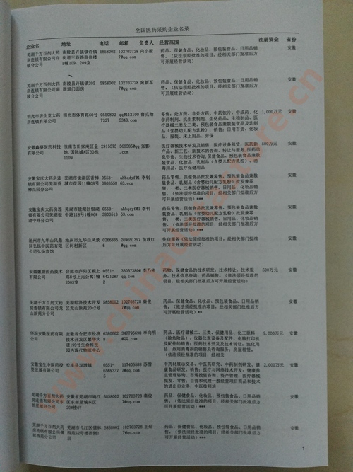 2024年新版中國醫(yī)藥采購企業(yè)黃頁,收錄了全國各地經(jīng)營范圍涉及醫(yī)藥產(chǎn)品的貿(mào)易企業(yè),這些都是頗具實(shí)力的醫(yī)藥產(chǎn)品的中國采購商。黃頁內(nèi)容包含:企業(yè)名稱、地址、電話、傳真、郵箱、經(jīng)營范圍、省份、注冊(cè)資金等信息。該套黃頁包含一個(gè)黃頁光碟加一冊(cè)紙質(zhì)書刊,全國價(jià)格:1500元,省/直轄市價(jià)格:400元,城市價(jià)格:200元,共收錄了全國各地大概152246(統(tǒng)計(jì)日期:2018.1)家醫(yī)藥產(chǎn)品采購企業(yè)。黃頁光碟中是EXCEL格式,信息可任意修改、復(fù)制、打印、導(dǎo)出及導(dǎo)入到傳真、郵件群發(fā)等軟件中,無任何限制。