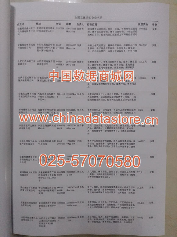 2024年新版中國文體戶外采購企業(yè)黃頁,收錄了全國各地經(jīng)營范圍涉及文體戶外產(chǎn)品的貿(mào)易企業(yè),這些都是頗具實(shí)力的文體戶外產(chǎn)品的中國采購商。黃頁內(nèi)容包含:企業(yè)名稱、地址、電話、傳真、郵箱、經(jīng)營范圍、省份、注冊資金等信息。該套黃頁包含一個(gè)黃頁光碟加一冊紙質(zhì)書刊,全國價(jià)格:1500元,省/直轄市價(jià)格:400元,城市價(jià)格:200元,共收錄了全國各地大概849(統(tǒng)計(jì)日期:2018.1)家文體戶外產(chǎn)品采購企業(yè)。黃頁光碟中是EXCEL格式,信息可任意修改、復(fù)制、打印、導(dǎo)出及導(dǎo)入到傳真、郵件群發(fā)等軟件中,無任何限制。