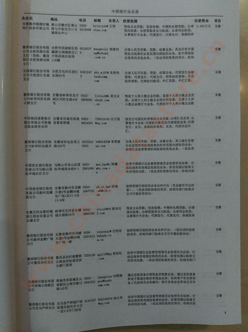 某省或直轄市 如上海、浙江銀行業(yè)名單  80% - 90% 600元 附贈一冊銀行業(yè)紙質印刷品