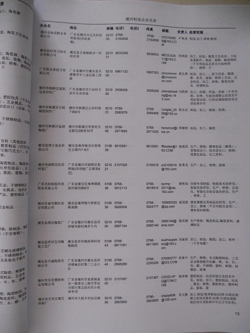 2021版最新潮州企業(yè)黃頁包括《潮州制造企業(yè)黃頁》、《潮州民營企業(yè)黃頁》,現(xiàn)優(yōu)惠價(jià):280元/冊(cè)。每冊(cè)內(nèi)容包括:單位名稱、地址、郵編、電話、傳真、郵箱、經(jīng)營范圍等;潮州企業(yè)黃頁涵蓋了近幾年來最新成立的、有一定規(guī)模的企業(yè),具有非常高的營銷價(jià)值。有了這套黃頁開展業(yè)務(wù)也有了針對(duì)性,也省去了盲目去尋找客戶名單而浪費(fèi)的時(shí)間了,工作效率也會(huì)有很大的提高。歡迎需要潮州企業(yè)黃頁的朋友及時(shí)聯(lián)系我們!