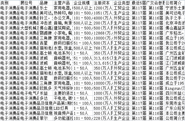 117屆廣交會參展商企業(yè)黃頁共30138條記錄(部分企業(yè)參加不止一期,實際數(shù)量2萬家左右)。售價200元,或聯(lián)系網(wǎng)站客服執(zhí)行任務免費獲取