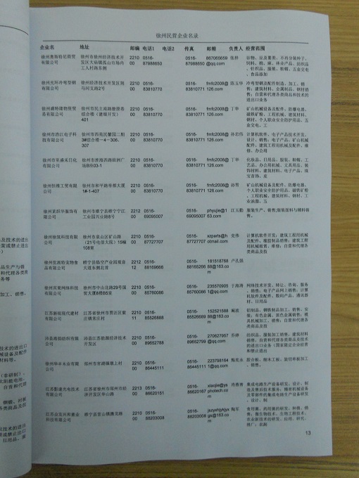 2021版最新徐州企業(yè)黃頁包括《徐州制造企業(yè)黃頁》、《徐州民營企業(yè)黃頁》,現(xiàn)優(yōu)惠價:280元/冊。每冊內(nèi)容包括:單位名稱、地址、郵編、電話、傳真、郵箱、經(jīng)營范圍等;徐州企業(yè)黃頁涵蓋了近幾年來最新成立的、有一定規(guī)模的企業(yè),具有非常高的營銷價值。有了這套黃頁開展業(yè)務(wù)也有了針對性,也省去了盲目去尋找客戶名單而浪費的時間了,工作效率也會有很大的提高。歡迎需要徐州企業(yè)黃頁的朋友及時聯(lián)系我們!