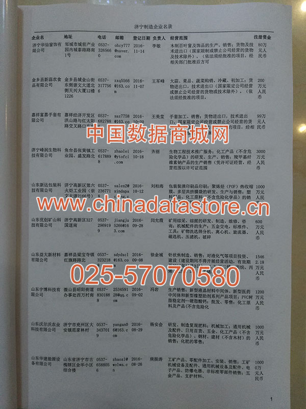 2021版最新濟(jì)寧企業(yè)黃頁(yè)包括《濟(jì)寧制造企業(yè)黃頁(yè)》、《濟(jì)寧民營(yíng)企業(yè)黃頁(yè)》,現(xiàn)優(yōu)惠價(jià):280元/冊(cè)。每?jī)?cè)內(nèi)容包括:?jiǎn)挝幻Q(chēng)、地址、郵編、電話、傳真、郵箱、經(jīng)營(yíng)范圍等;濟(jì)寧企業(yè)黃頁(yè)涵蓋了近幾年來(lái)最新成立的、有一定規(guī)模的企業(yè),具有非常高的營(yíng)銷(xiāo)價(jià)值。有了這套黃頁(yè)開(kāi)展業(yè)務(wù)也有了針對(duì)性,也省去了盲目去尋找客戶名單而浪費(fèi)的時(shí)間了,工作效率也會(huì)有很大的提高。歡迎需要濟(jì)寧企業(yè)黃頁(yè)的朋友及時(shí)聯(lián)系我們!