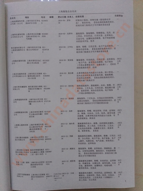上海服裝企業(yè)黃頁(yè)收錄了最新的上海服裝企業(yè)名單,具有極高的營(yíng)銷(xiāo)價(jià)值,實(shí)實(shí)在在提高銷(xiāo)售業(yè)績(jī)