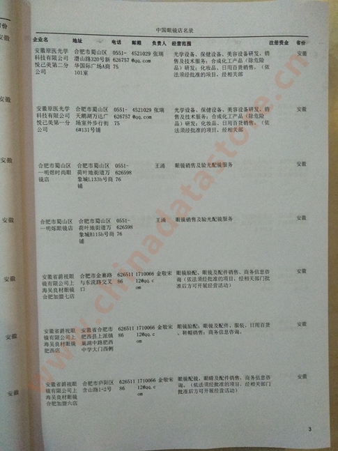 某省或直轄市 如上海、浙江眼鏡企業(yè)名單  80% - 90% 600元 附贈(zèng)一冊(cè)眼鏡紙質(zhì)印刷品