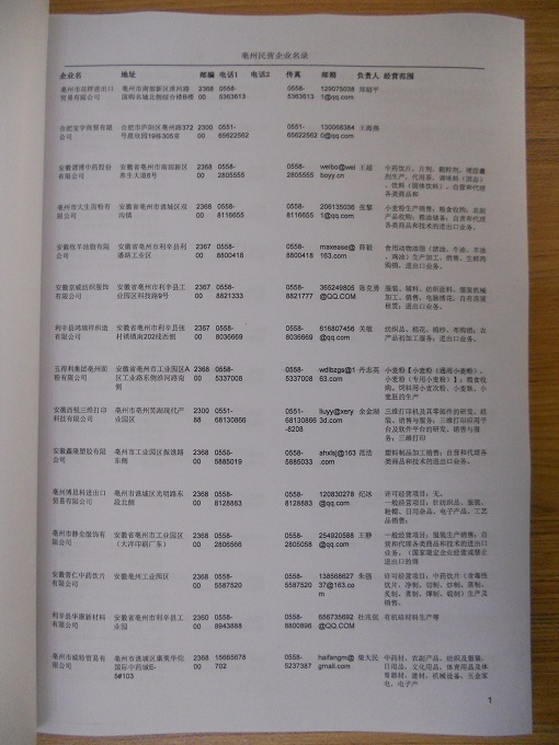 2021版最新亳州企業(yè)黃頁包括《亳州制造企業(yè)黃頁》、《亳州民營企業(yè)黃頁》,現(xiàn)優(yōu)惠價:280元/冊。每冊內(nèi)容包括:單位名稱、地址、郵編、電話、傳真、郵箱、經(jīng)營范圍等;亳州企業(yè)黃頁涵蓋了近幾年來最新成立的、有一定規(guī)模的企業(yè),具有非常高的營銷價值。有了這套黃頁開展業(yè)務(wù)也有了針對性,也省去了盲目去尋找客戶名單而浪費的時間了,工作效率也會有很大的提高。歡迎需要亳州企業(yè)黃頁的朋友及時聯(lián)系我們!