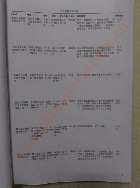 2021版最新黃石企業(yè)黃頁(yè)包括《黃石制造企業(yè)黃頁(yè)》、《黃石民營(yíng)企業(yè)黃頁(yè)》,現(xiàn)優(yōu)惠價(jià):280元/冊(cè)。每?jī)?cè)內(nèi)容包括:?jiǎn)挝幻Q、地址、郵編、電話、傳真、郵箱、經(jīng)營(yíng)范圍等;黃石企業(yè)黃頁(yè)涵蓋了近幾年來最新成立的、有一定規(guī)模的企業(yè),具有非常高的營(yíng)銷價(jià)值。有了這套黃頁(yè)開展業(yè)務(wù)也有了針對(duì)性,也省去了盲目去尋找客戶名單而浪費(fèi)的時(shí)間了,工作效率也會(huì)有很大的提高。歡迎需要黃石企業(yè)黃頁(yè)的朋友及時(shí)聯(lián)系我們!