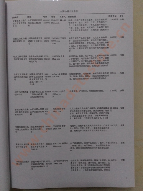 全國動漫企業(yè)黃頁 全國所有動漫企業(yè)黃頁 80% - 90% 2000元 附贈一冊動漫紙質(zhì)印刷品