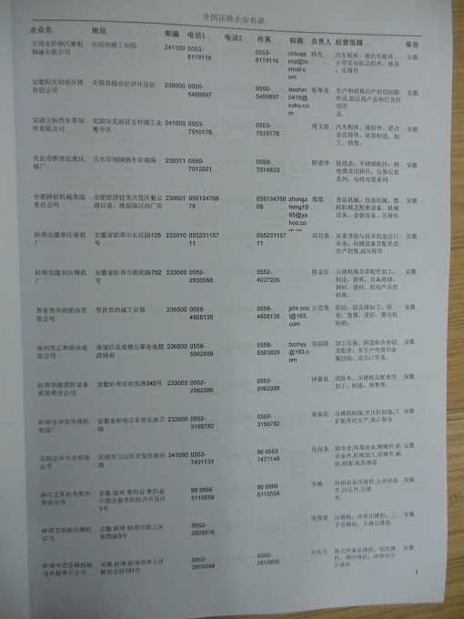 壓鑄企業(yè)黃頁收錄了最新的壓鑄企業(yè)名單,具有極高的營(yíng)銷價(jià)值,實(shí)實(shí)在在提高銷售業(yè)績(jī)