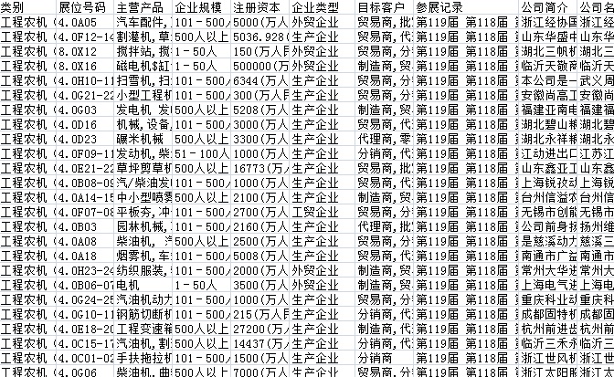 119屆廣交會參展商黃頁數據為Excel格式,信息可任意修改、復制、打印、導出及導入到傳真、郵件群發(fā)等軟件中,無任何限制。