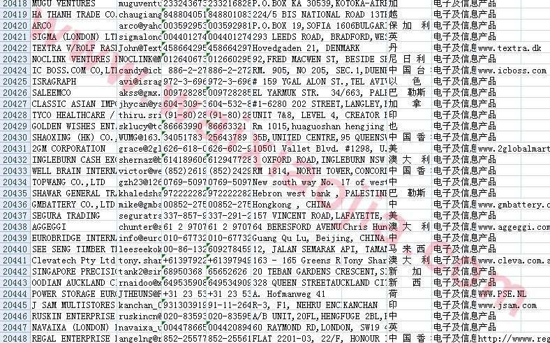 電子電工及信息產(chǎn)品采購商名單數(shù)據(jù)為Excel格式,信息可任意修改、復(fù)制、打印、導(dǎo)出及導(dǎo)入到傳真、郵件群發(fā)等軟件中,無任何限制。