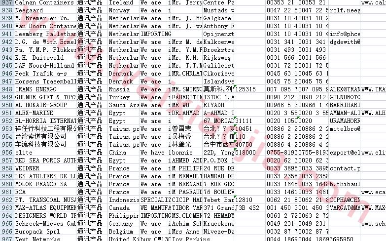 通訊產(chǎn)品采購商名單數(shù)據(jù)為Excel格式,信息可任意修改、復(fù)制、打印、導(dǎo)出及導(dǎo)入到傳真、郵件群發(fā)等軟件中,無任何限制。