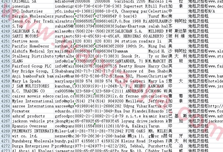 地毯及掛毯采購商名單數(shù)據(jù)為Excel格式,信息可任意修改、復(fù)制、打印、導(dǎo)出及導(dǎo)入到傳真、郵件群發(fā)等軟件中,無任何限制。