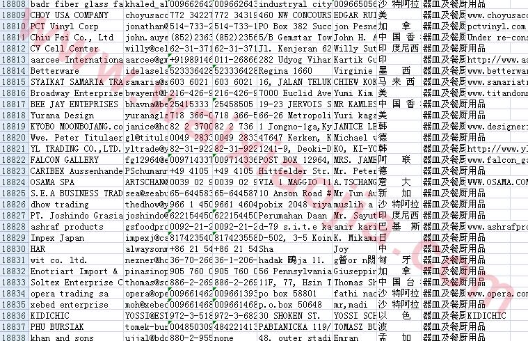 器皿及餐廚用品采購(gòu)商名單數(shù)據(jù)為Excel格式,信息可任意修改、復(fù)制、打印、導(dǎo)出及導(dǎo)入到傳真、郵件群發(fā)等軟件中,無任何限制。