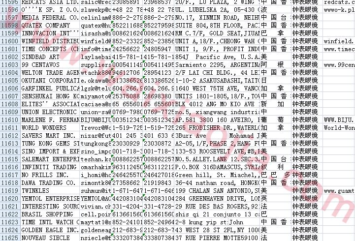 鐘表眼鏡采購商名單數據為Excel格式,信息可任意修改、復制、打印、導出及導入到傳真、郵件群發(fā)等軟件中,無任何限制。