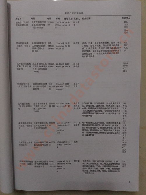 最新北京外資企業(yè)黃頁(yè)數(shù)據(jù)涵蓋了北京外商獨(dú)資企業(yè)、中外合資經(jīng)營(yíng)企業(yè)以及港、澳、臺(tái)資企業(yè),包括北京臺(tái)資日資企業(yè)黃頁(yè)等,北京外企名單具體內(nèi)容包括:企業(yè)名稱、地址、電話、傳真、郵箱、經(jīng)營(yíng)范圍、注冊(cè)資金等信息;北京日企臺(tái)企黃頁(yè)里面的企業(yè)都一些中外合資的大企業(yè),這些公司經(jīng)濟(jì)實(shí)力都比較雄厚,出口產(chǎn)品也比較多,業(yè)務(wù)范圍都比較廣,跟他們開展業(yè)務(wù)往來(lái)都比較容易;有了北京外企黃頁(yè)開展業(yè)務(wù)也有了針對(duì)性,也省去了盲目去尋找客戶名單而浪費(fèi)的時(shí)間了,工作效率也會(huì)有很大的提高.歡迎需要的客戶及時(shí)聯(lián)系我們!